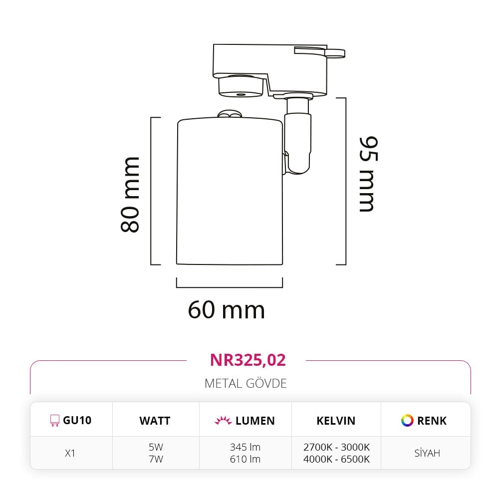 Nevo Dekoratif Ray Spot Siyah NR325 (NR325,02)